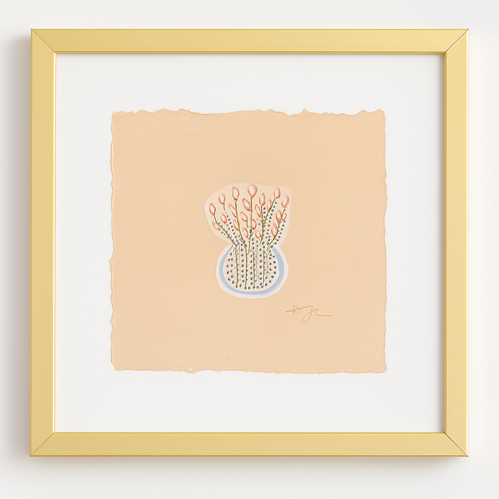 Acrylic on deckle edge paper framed measuring 12"x12"