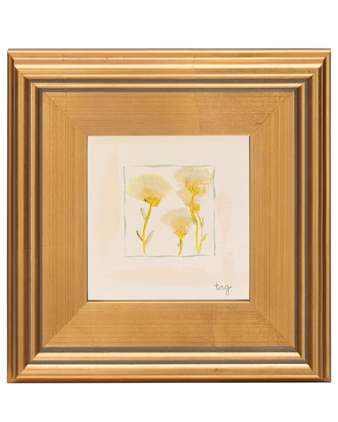 Acrylic on canvas; art measures 6"x6", framed total measurements are 13"x13"