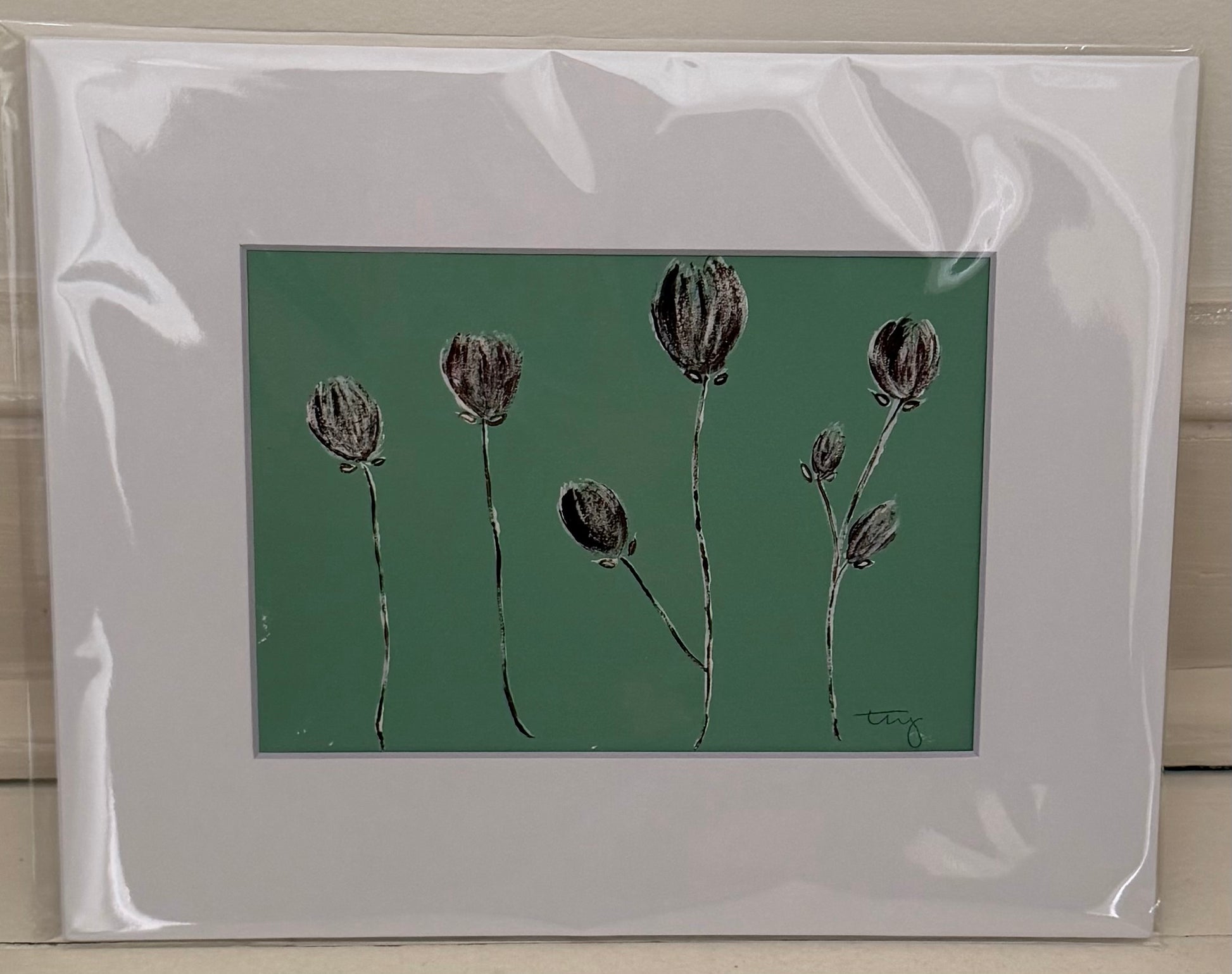 5"x7" original acrylic on deckle edge paper matted and backed