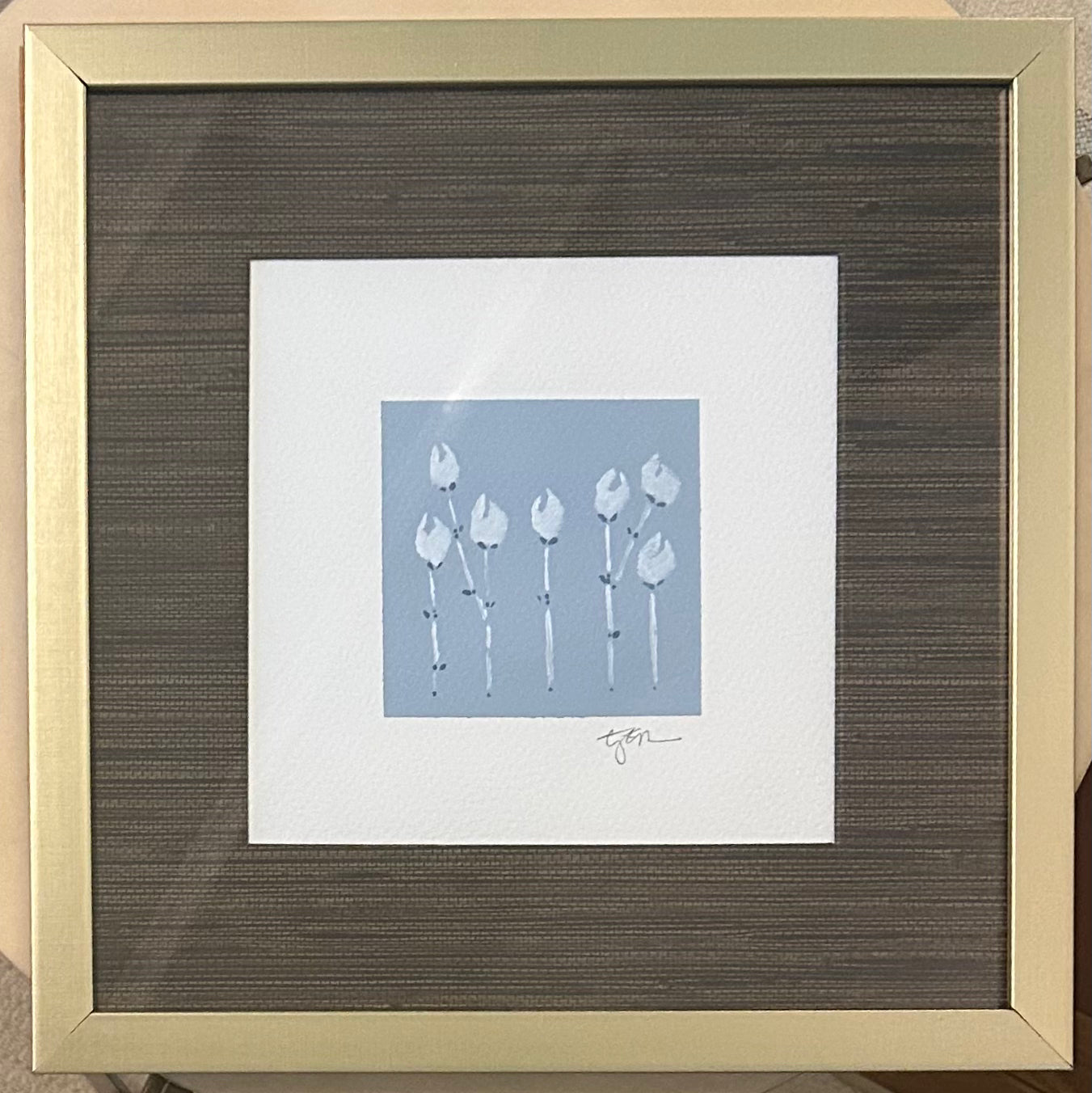 Acrylic on deckle edge paper with grasscloth matting in gold 12"x12" frame