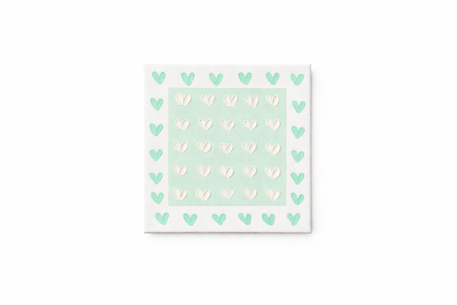 Hand-painted acrylic hearts on 6"x6" canvas; not framed