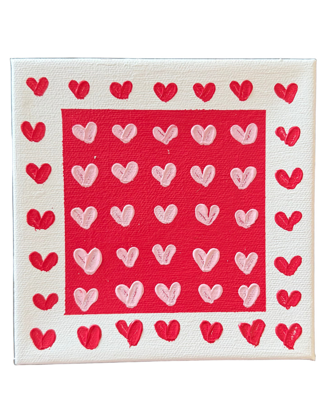 Hand-painted acrylic hearts on 6"x6" canvas; not framed