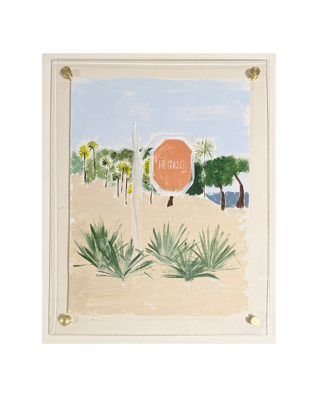 Acrylic on canvas fabric mounted in acrylic floating frame 11"x14"
