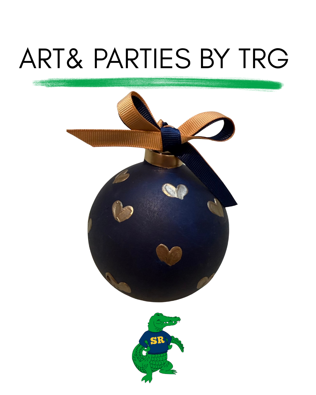 Stone Ridge school spirit ornaments are hand painted on 3.5" bisque ceramic ornaments with a matte varnish and come tied with a signature TRG school spirit grosgrain bow.
