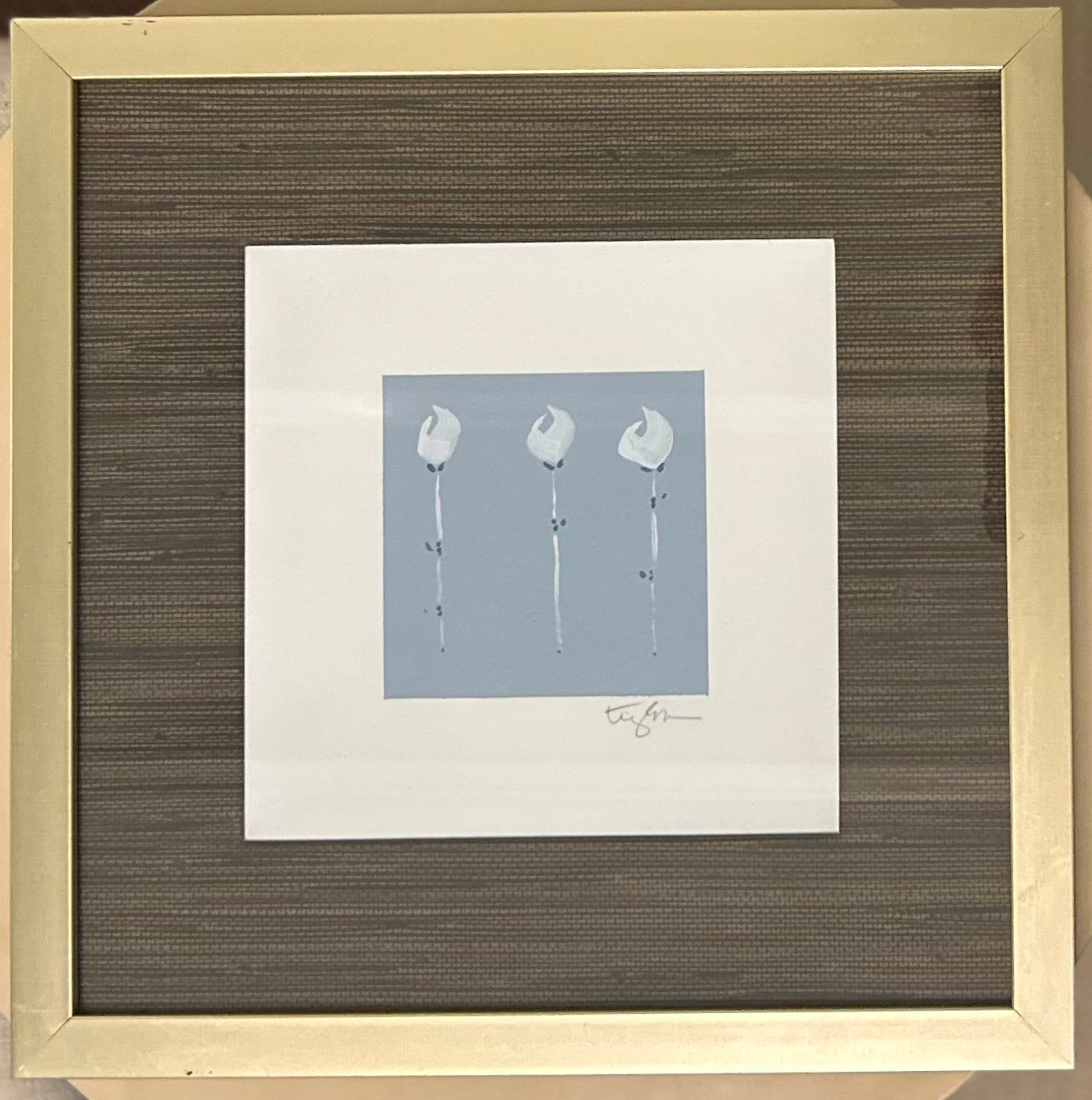 Acrylic on deckle edge paper with grasscloth matting in gold 12"x12" frame